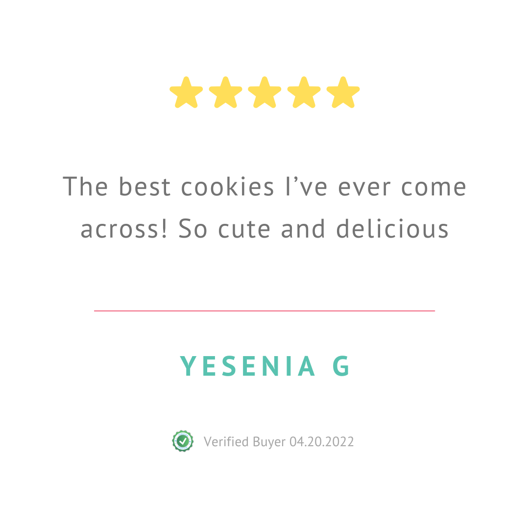 5 Star Review: The best cookies I've ever come across! So cute and delicious. Yesenia G Verified Buyer 04.20.22