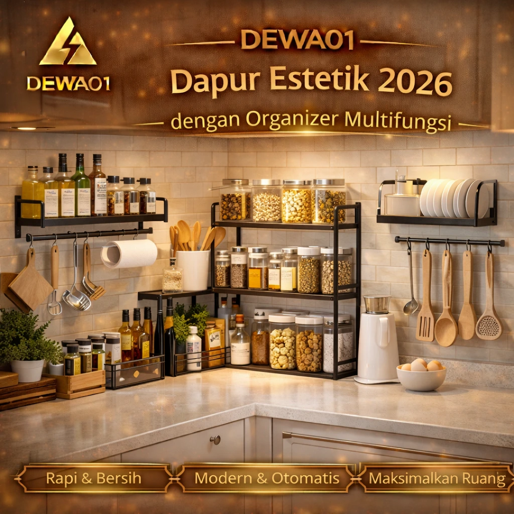 DEWA01 menghadirkan inspirasi terbaru untuk menciptakan dapur estetik di tahun 2026 melalui penggunaan organizer multifungsi yang mampu membuat dapur terlihat lebih rapi, modern, dan nyaman digunakan.'